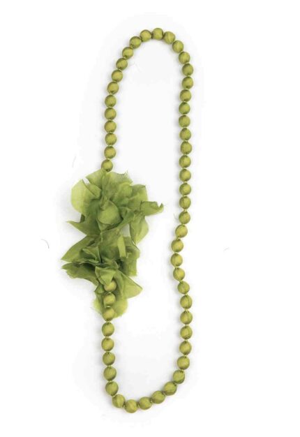 Collana girocollo in seta 100% naturale con circa 60 sfere di legno all’interno