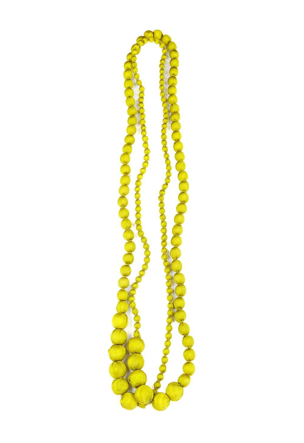 Realizzata con sfere in legno ricoperte di seta 100% naturale.