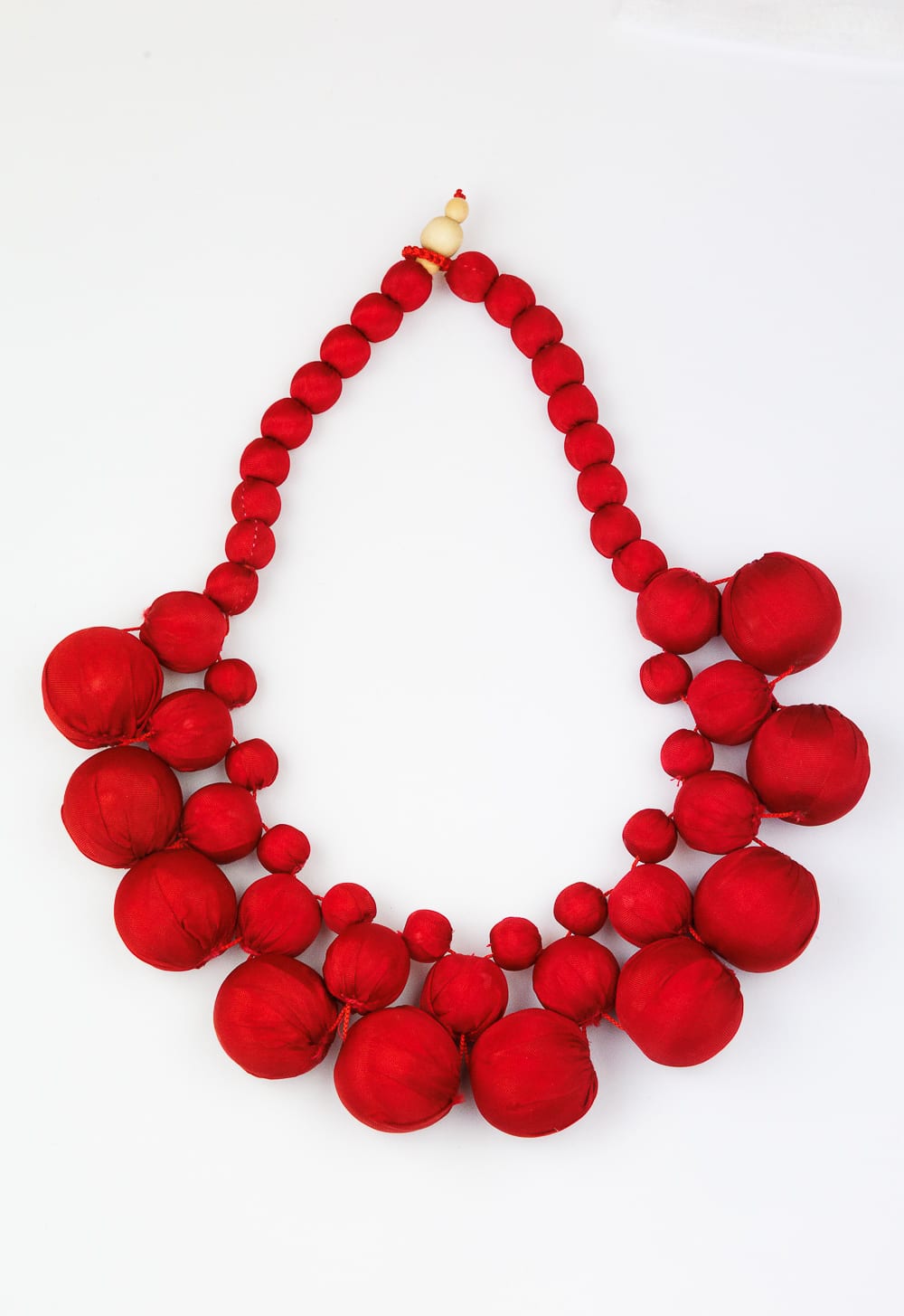Necklace in silk with inside 50 wooden balls of the variable size from 1 cm to 3 cm.