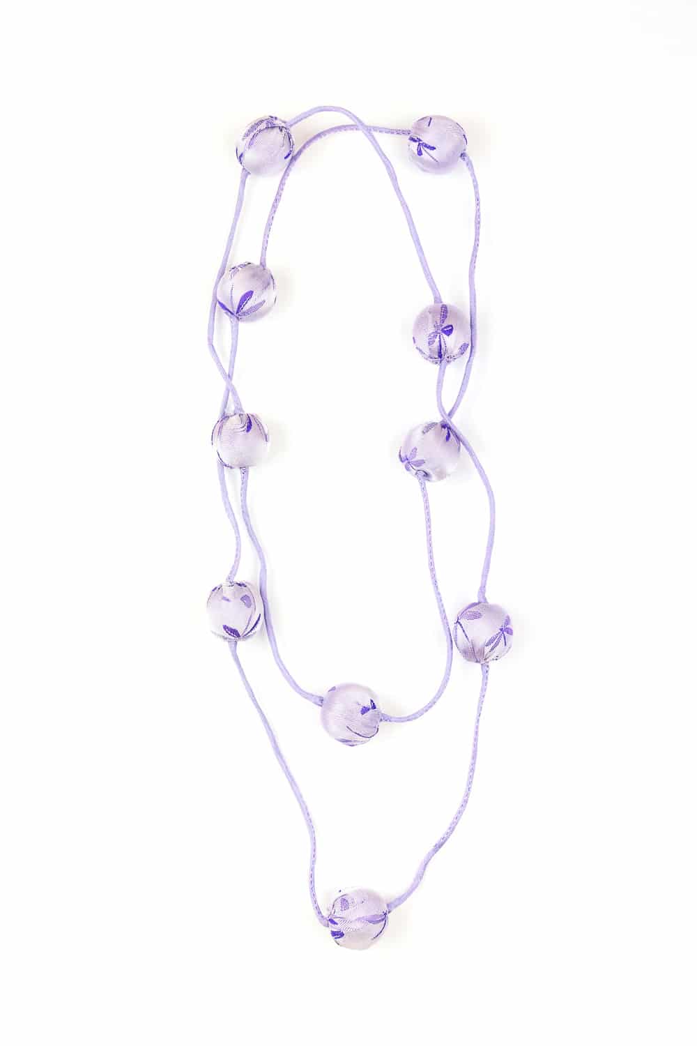 Composta da 10 palline in seta e legno della dimensione di circa 3 cm.