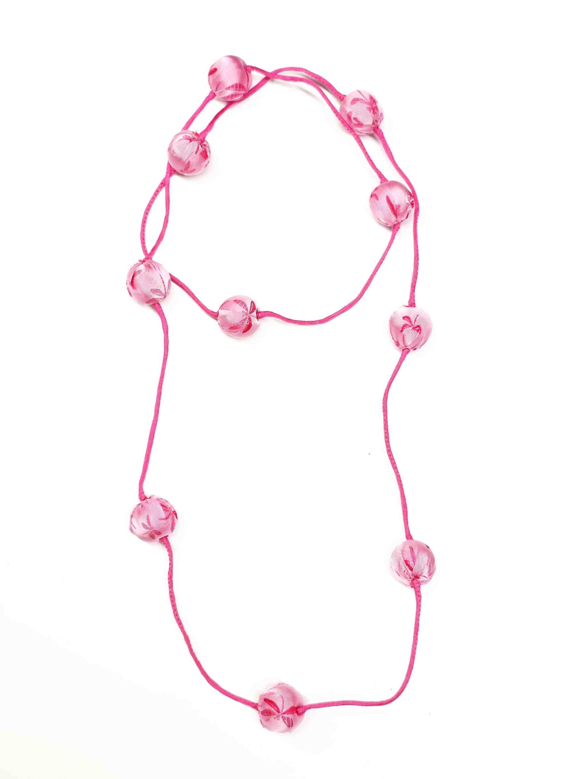 Necklace made of silk with fabric decorated with a dragonfly, length about 100 cm, suffcient for two rounds around the neck.