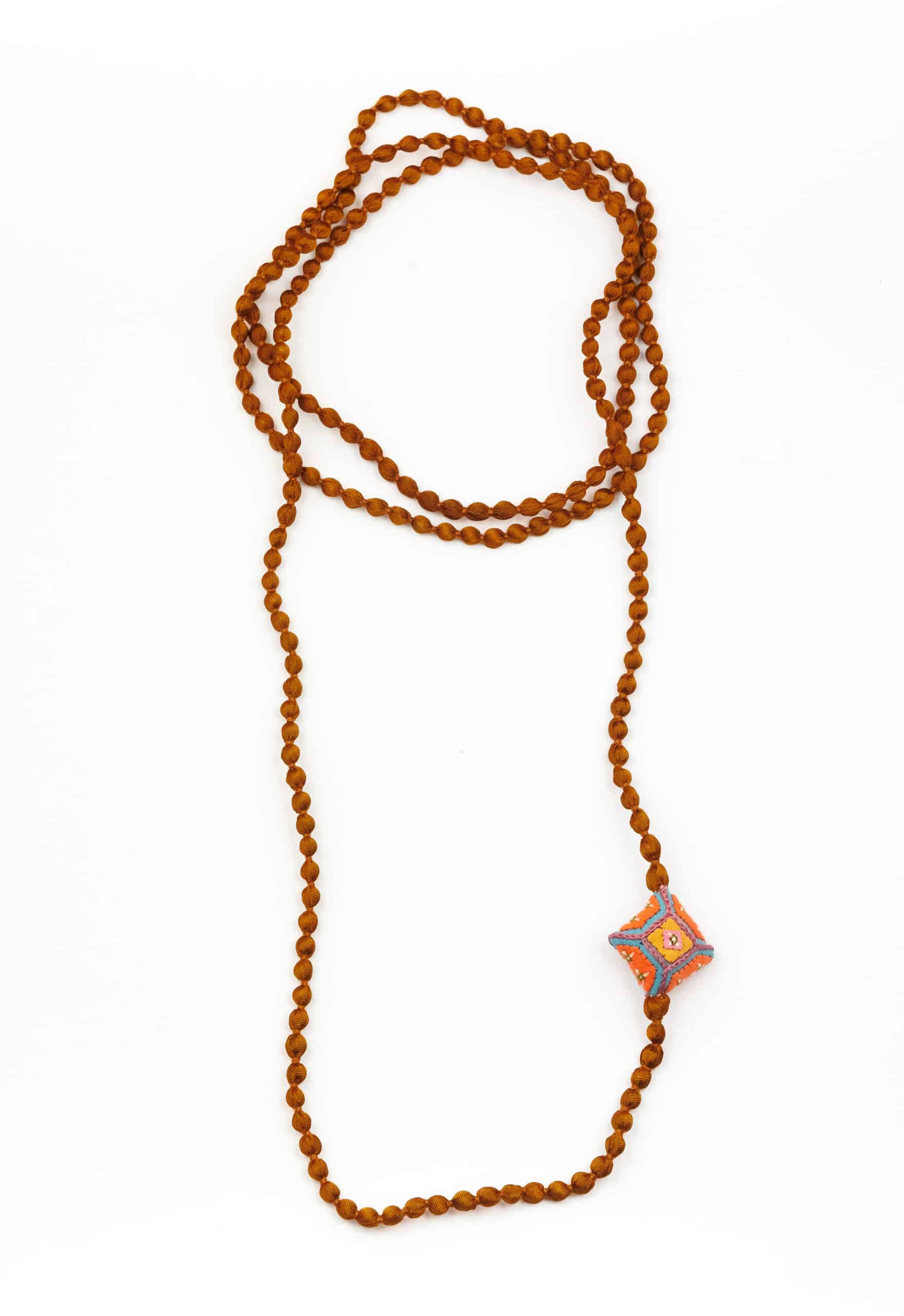 Necklace made of silk, long enough for three loops around the neck.