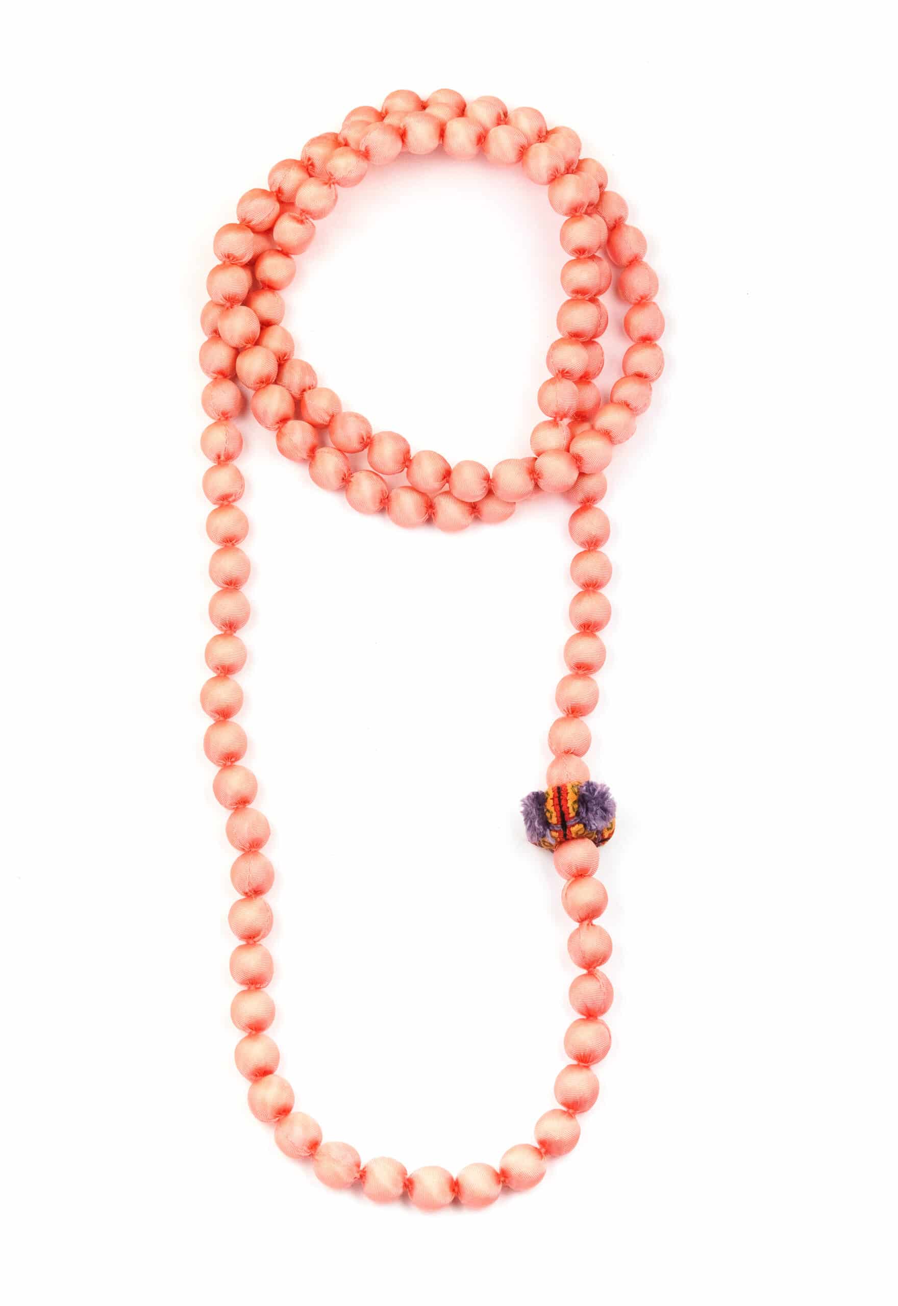 Necklace made of silk, long enough for three loops around the neck.
