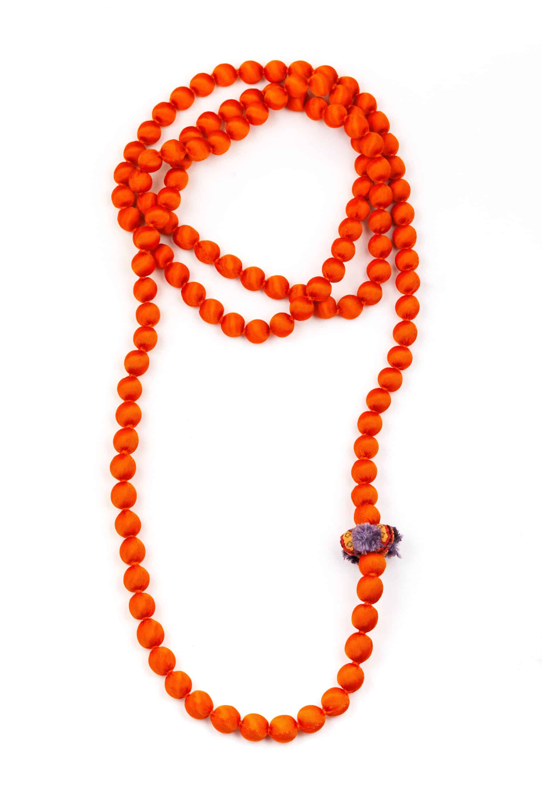 Collana realizzata in seta, di lunghezza suffciente per tre giri intorno al collo.