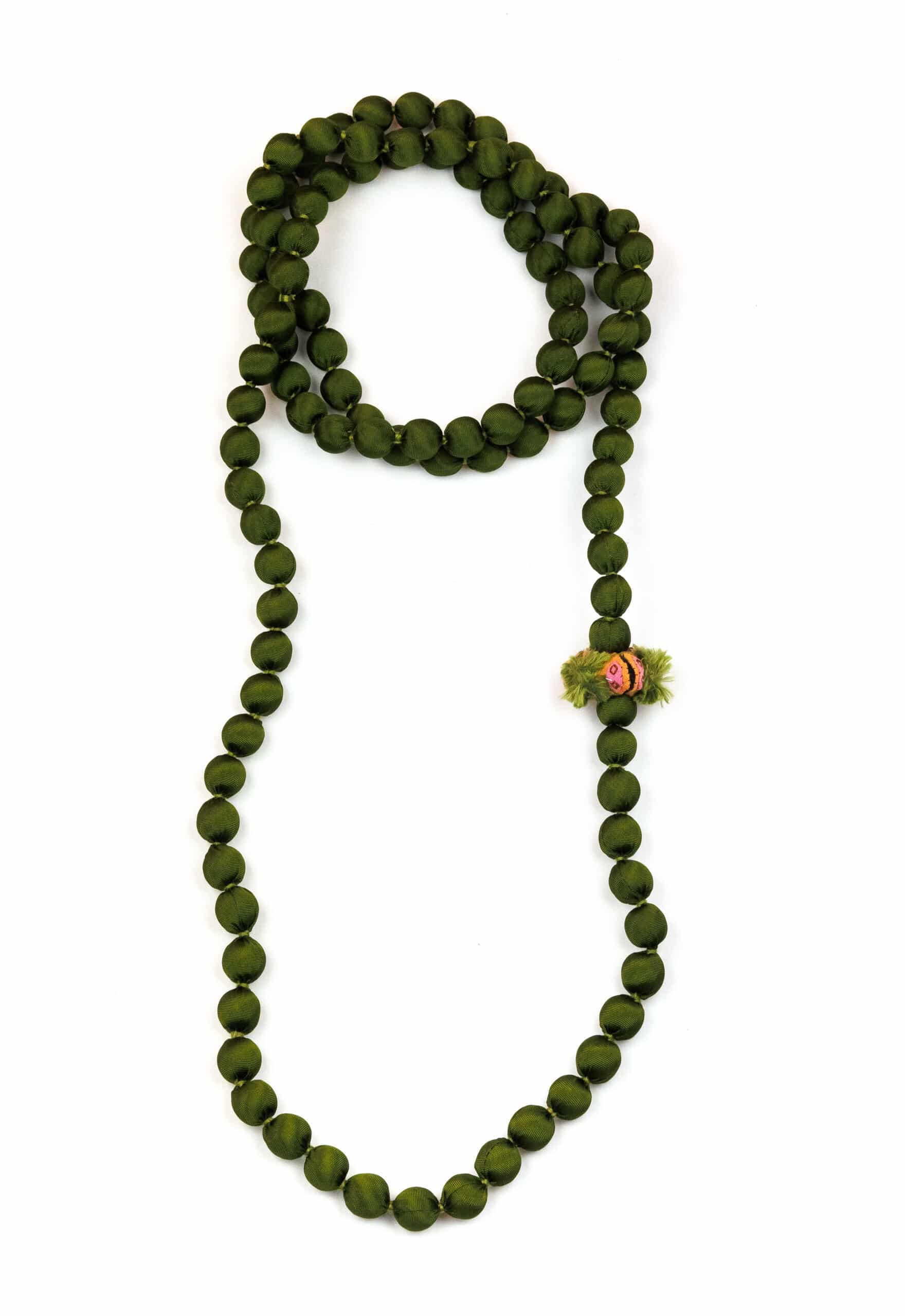 Collana realizzata in seta, di lunghezza suffciente per tre giri intorno al collo.