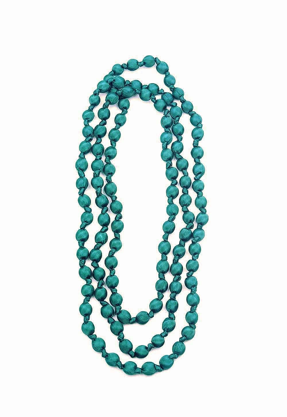 Collana in seta 100% con palline di legno di 1 cm circa (Circa 150 palline).
